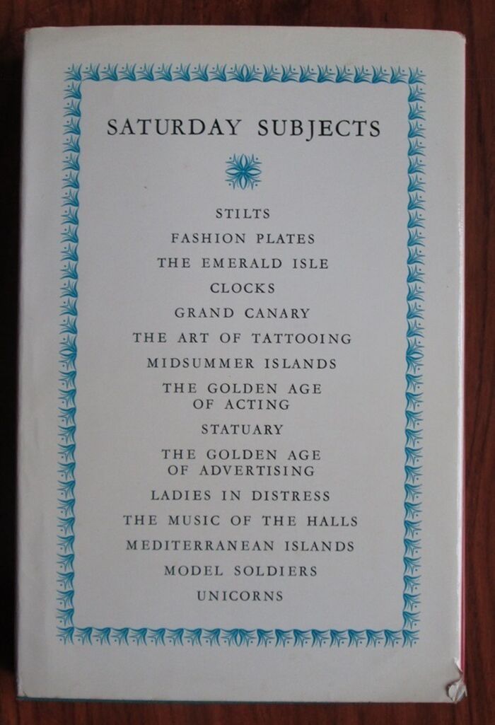 Hardback. The Saturday Book was an annual cultural miscellany edited in its later years by John Hadfield (author of Love on a Branch Line). This edition includes poems by Philip Larkin and Elizabeth Jennings and subjects covered include the art of tattooing, Grand Canary, clocks, Jules David and Victorian fashion plates by Vyvyan Holland accompanied by vintage plates many in colour, the golden age of acting illustrated with black and white publicity photographs. The edition is also illustrated by wood-engravings of bridges by George Mackley, line drawings and vintage adverts etc. Dust jacket illustrated by William McLaren. In original matching box.