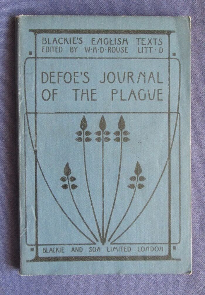 Paperback. 112pp. Blackie’s English Texts series. Done with journalistic skill drawing strongly on facts and eyewitness accounts.Talwin Morris design in black on blue limp cloth. Daniel Defoe’s fictional journal of the Great Plague of London 1665.