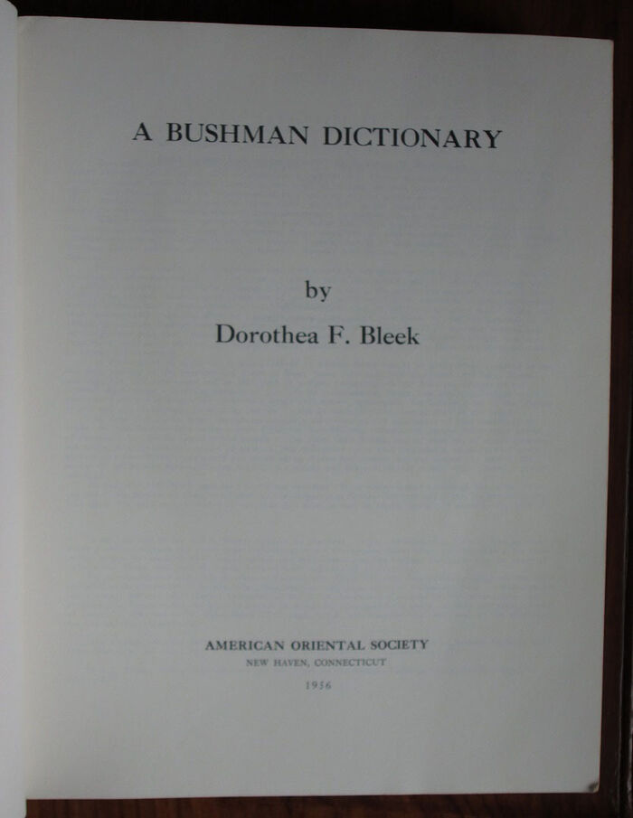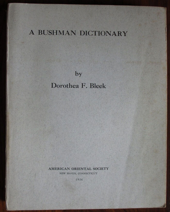 Paperback. vii,773pp. Substantial dictionary: Bushman Languages to English form the bulk of the book though there is is an English-Bushman index. 280 by 215mm (11 by 8½ inches). American Oriental Series, Volume 41. Hard to find.