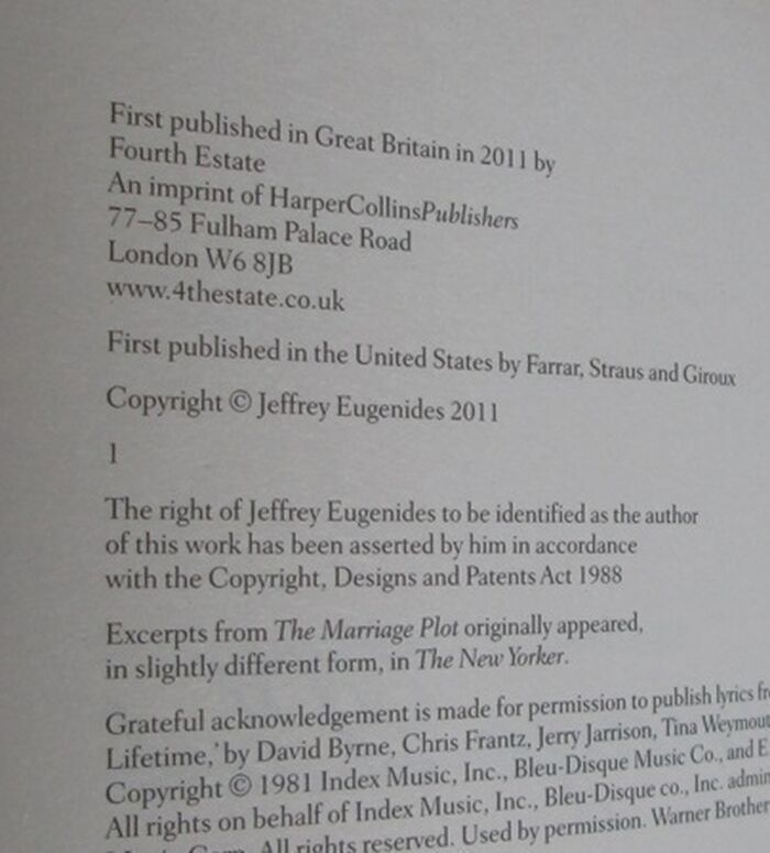 Hardback. First UK edition. Novel by the Pulitzer Prize winning author Jeffrey Eugenides.