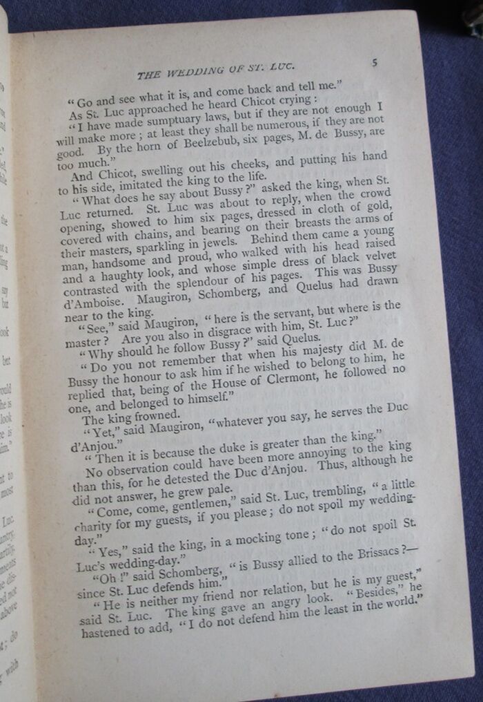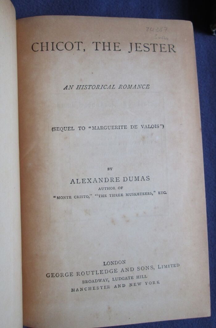 Hardback. Three volumes of historical fiction comprising the first three titles from Alexandre Dumas, père’s Valois romances. These are the three that cover the life and times of Margaret of Valois (La Reine Margot). blue cloth with gilt titles to front and spine and gilt decorations to spine.