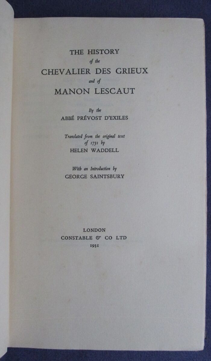 Hardback. xxxix,262pp. Translated from the original text of 1731 by Helen Wadell. Introduction by George Saintsbury. Quarter bound in beige cloth with papers to boards. To spine a leather label lettered in gilt. 1931 in gilt to the tail of the spine. an attractive edition.