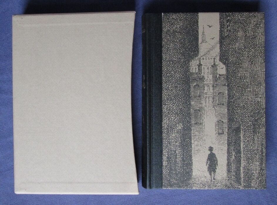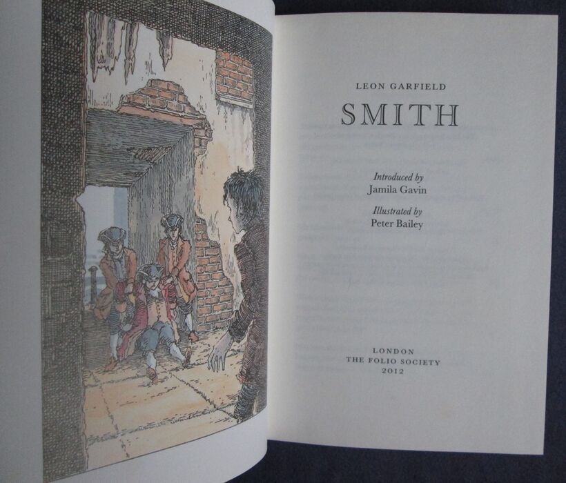 Hardback. Leon Garfield’s classic tale of Victorian London. For older children. Introduced by Jamila Gavin. Illustrated by Peter Bailey. Colour frontis. and 7 further colour plates. Beige paper to front board illustrated in black with gilt highlights with the rest bound in black buckram, with gilt titles to spine. Beige slipcase. First Folio Society edition.