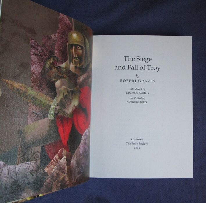 Hardback. 108pp. Graves’ retelling of the siege of Troy aimed at young people. Introduced by Lawrence Norfolk. Illustrated by Grahame Baker. Three quarter bound in green cloth with paper to boards printed with a design by the artist. Gilt titles to spine. Colour frontis and 7 further plates.