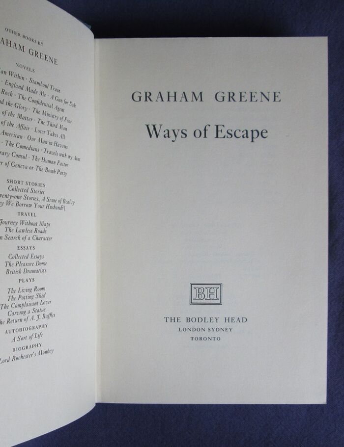 Hardback. First edition. Autobiography concentrating on the writer’s life rather than the life of the man. This was Greene’s second volume of autobiography.