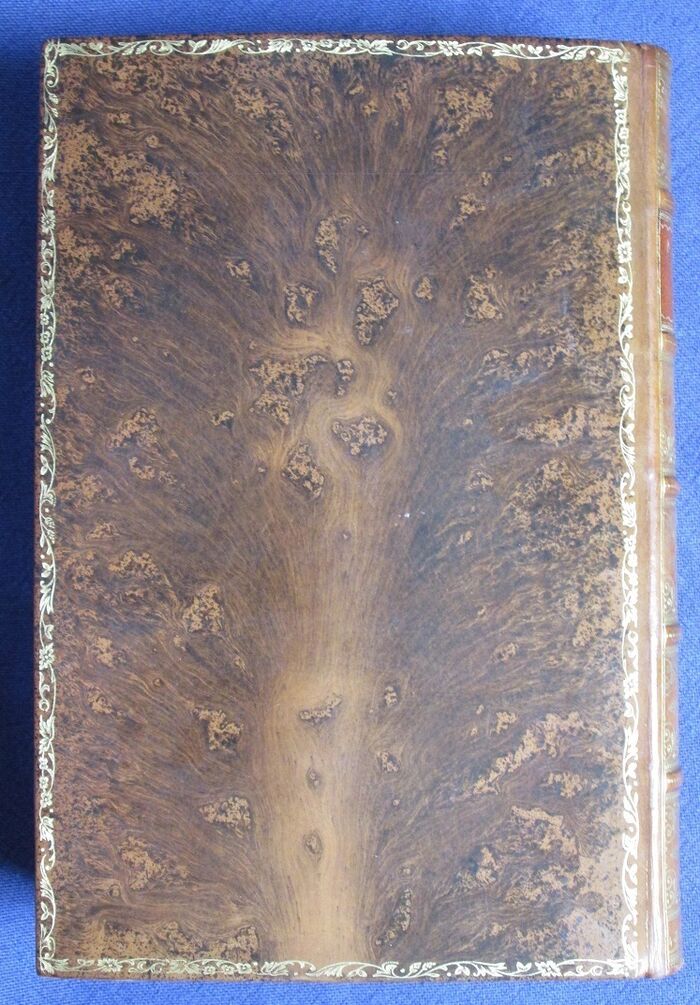Hardback. Full leather. Fine binding in tree-calf by Riviere. Raised bands to spine with gilt title to one compartment and gilt decorations to the remaining compartments. Decorative floral boarder in gilt to both boards. Inner gilt dentelles, Marbled endpapers and marbled page edges.