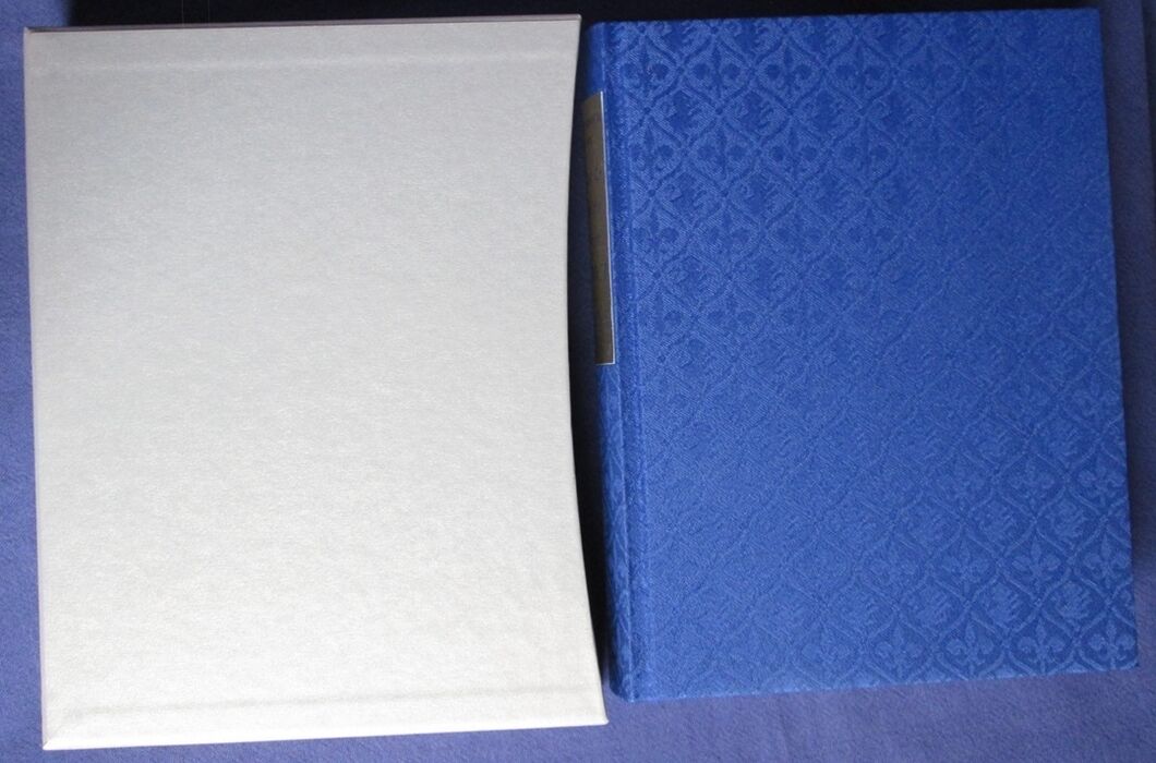 Hardback. Bound in blue cloth with jacquard style self-coloured pattern. Gold coloured slipcase. Colour illustrated endpapers. Four selections of colour plates. Foreword by Harold Acton.
