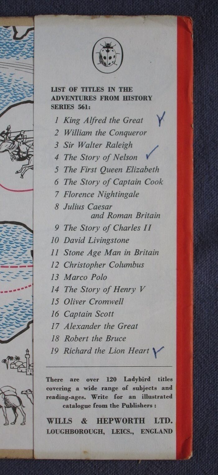 Hardback. 52pp. Colour illustrated throughout by John Kenney. Ladybird Series 561 an Adventure from History. Maps to endpapers. Beige papers to boards with blue illustration to front and colour illustrated dust jacket. Tally number 120 and this is the last title on the rear dust jacket flap so presumed first edition.