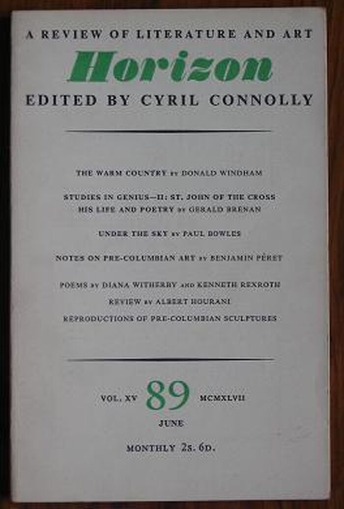 Cyril Connolly's influential Horizon. Contributions include: 'St John of the Cross: His Life and Poetry' by Gerald Brenan, 'Notes on Pre-Columbian Art' by Benjamin Péret etc. Poems by Diana Witherby and Kenneth Rexroth. Reproductions of Pre-Columbian Sculptures.