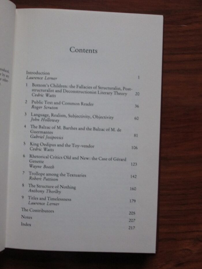 Hardback. 218pp. Contributors include Cedric Watts, Roger Scruton, Wayne Booth etc.