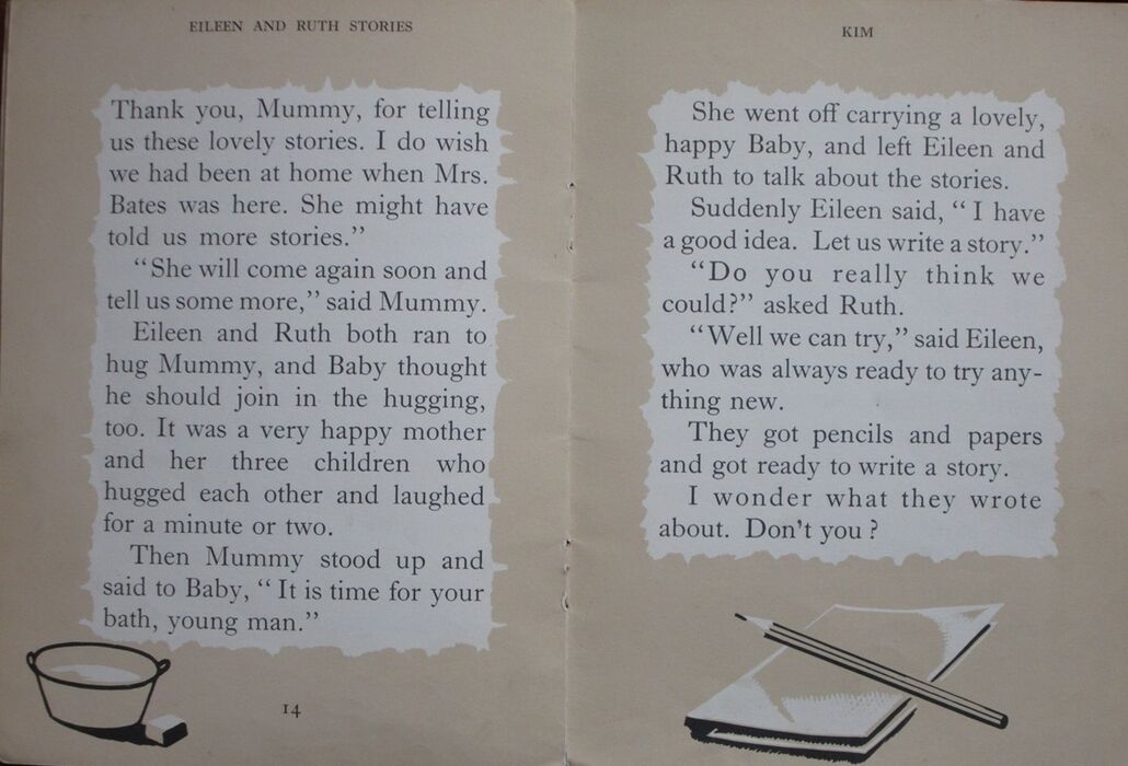 Paperback. 24pp. No date but British Library notes 1950s for this series. Stapled binding. Black and white illustrations printed onto coloured borders. Two stories: Kim; At the Zoo.