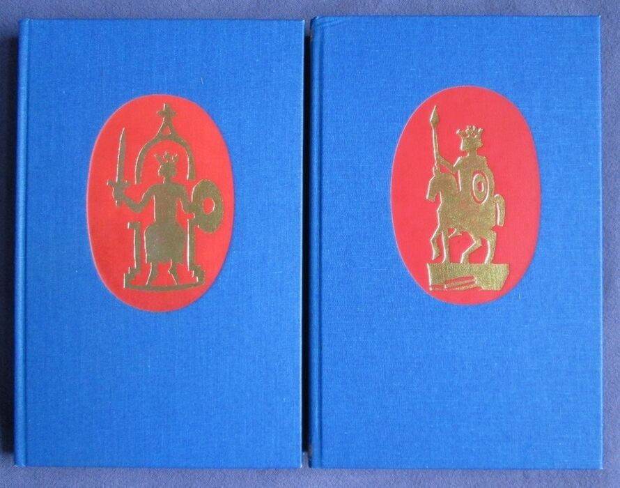 Hardback. Three volume set bound in full blue cloth blocked with a design by the artist Edward Bawden in red and gilt and lettered in gilt to the spine. Linocuts by Edward Bawden throughout. Matching slipcase with two-tone illustrations in blue to three sides with red paper to top and bottom. Foreword by Kevin Crossley Holland. Revised and with an introduction by Sue Bradbury. 292+348+262pp. Glossaries.