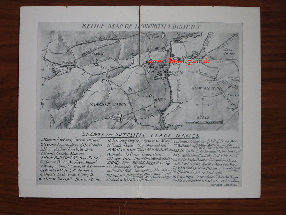 Photo Relief Map of Haworth and District with Key to Brontë and Sutcliffe Place Names