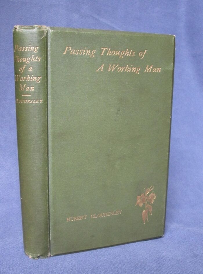 Hardback. 212pp. Short essays on a number of subjects but especially on the roles of the sexes and their rights and wrongs. Also includes several essays on poetry including one on Longfellow’s Evageline, and an essay on laughter. John Wrigglesworth 1856-19031 was a cotton dyer’s labourer from Greetland near Halifax who published under his own name and under this pseudonym Hubert Cloudsley2. Wrigglesworth was a member of the Calder Valley Poets3. Abigail Clare Sage in her PhD thesis on aspiring writers notes that, “John Wrigglesworth submitted a novel to Macmillan in 1891, but at other points published poetry (on general topics and ‘private interests, such as the marriages and deaths of friends’) and a book of essays ‘on such subjects as the Rights and Wrongs of Women’, which he sent to William Gladstone, and which elicited a letter of praise back.”4 Which latter is this this volume. Green cloth with gilt titles to front and a gilt flower. Gilt titles to the spine. Bevelled edges to the boards. 1 and 3Malcom Bull’s Calderdale companion via J. Horsfall Turner's Halifax Books & Authors. 2 and 4 PhD thesis - Aspiring Writers and the Conditions of Authorship, 1870– 1914 by Abigail Clare Sage, Cambridge 2020.