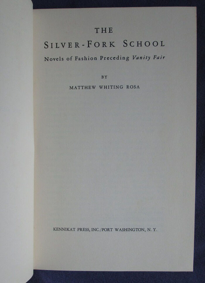 The Silver-Fork School: Novels of Fashion Preceding Vanity Fair