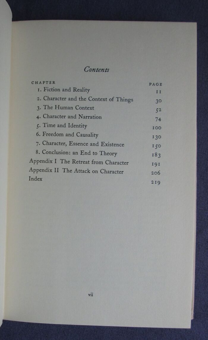 Hardback. 222pp. A study of character in the light of notions such as Time, Identity and Freedom. With particular attention to the novels of Henry James, Thomas Mann, Jean-Paul Sartre and Charles Dickens.