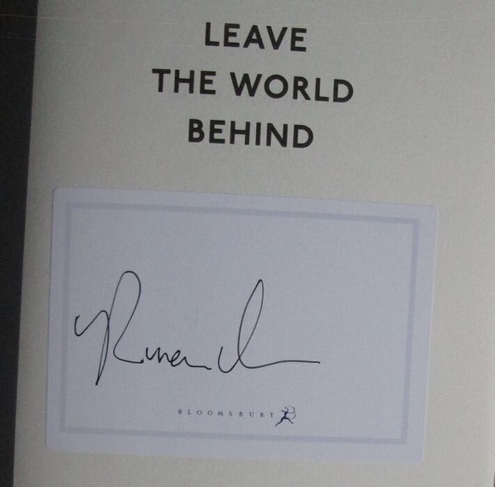 Hardback. First edition first printing with complete numberline. Waterstones special edition with signed bookplate and Illustrated sprayed edges. Apocalyptic novel Leave the World Behind was made into a film by Netfix, starring Julia Roberts, Ethan Hawke, Mahershala Ali and Myha'la.