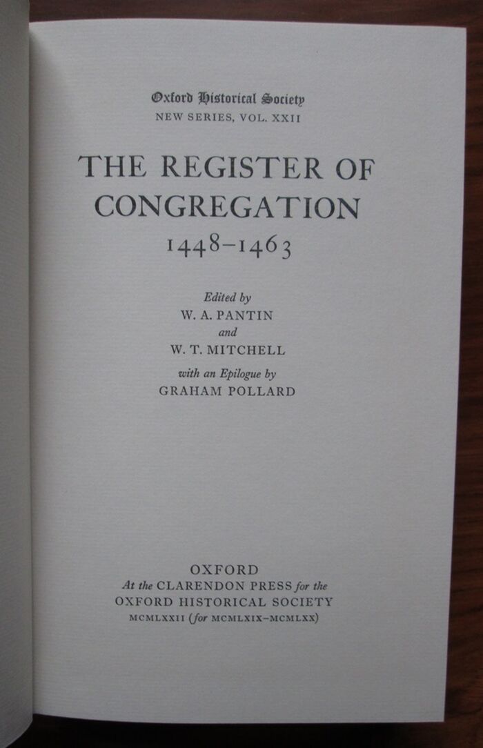 The Register of Congregation 1448-1463 - Oxford Historical Society New Series Vol. XXII