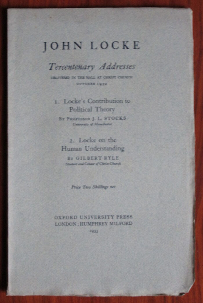 John Locke: Tercentenary Addresses Delivered in the Hall at Christ Church October 1932 - Locke’s Contribution to Political Theory; Locke on the Human Understanding