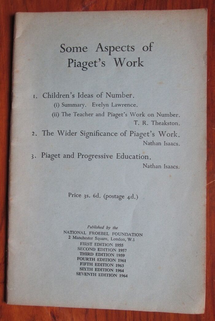 pamphlet. Contains: Children’s Idea of Number; the Wider Significance of Piaget’s Work; Piaget and Progressive Education. Contributors are Evelyn Lawrence, T. R. Theakston, Nathan Isaacs.