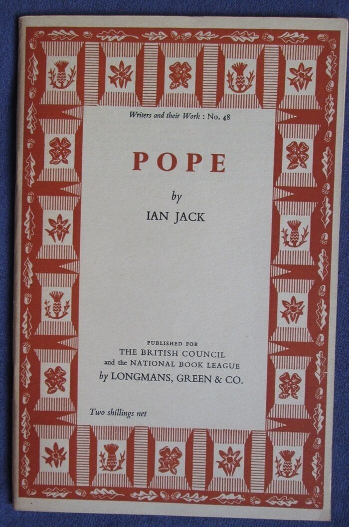 Paperback. 36pp. No. 48 in the Writers & Their Work series. Black and white frontis. Matt cream card cover with repeating pattern in brown of the flower emblems of England, Scotland, Ireland and Wales as a border: shamrock, daffodil and thistle surrounded by oak leaves and acorns.