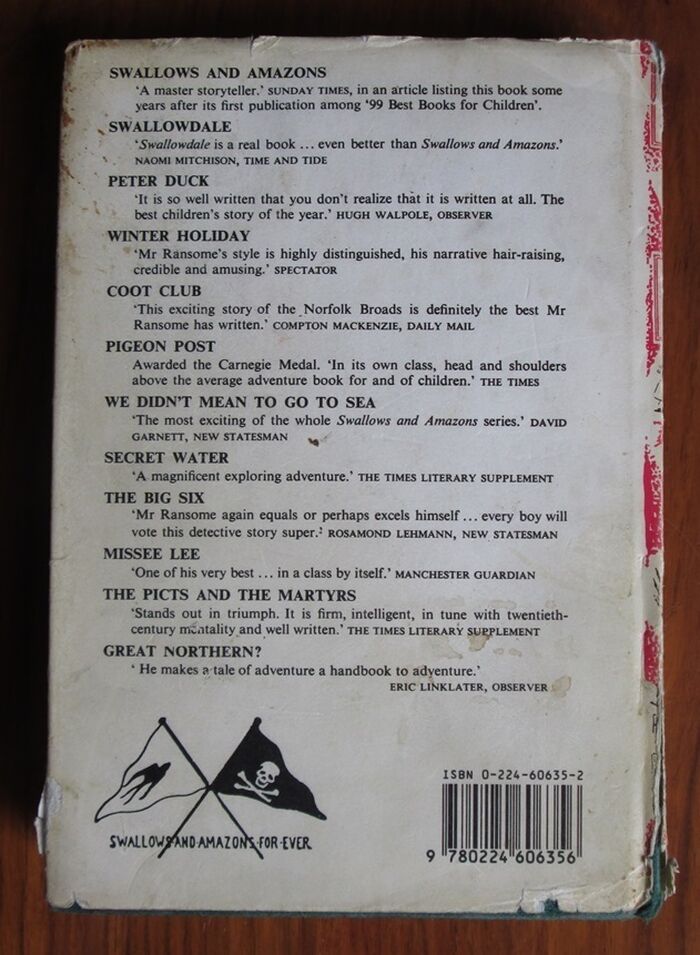 Hardback. 349pp. From the Swallows and Amazon series. Dick and Dorothea Callum, who met the Walker children in Winter Holiday, star in this Norfolk Broads adventure by themselves. With the author's illustrations to the text and vintage style dust jacket. Maps to endpapers. Green boards with gilt titles to spine and blind stamped title to the front. Black and white frontis. Further black and white illustrations throughout. We have lots more Arthur Ransome books in stock.