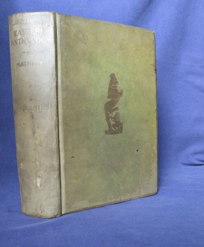 | Notes | 1000 numbered copies printed but the number is in the missing volume 1. Binding has gilt illustration to front and gilt titles to spine. Gilt to front is bright but pale vellum bevelled boards, once dark cream or yellow, are heavily dust soiled and has some occasional marks to front, with a significant stain to back which as a thin layer of paper stuck to it. Gilt to spine is rubbed and the spine is creased and marked. Slight stain to endpapers to closed page edges of next few pages. Text block is clean and bright and illustrations are crisp. Gilt to top edge; uncut to fore-edge and bottom edge. One illustration has missed being coloured. An unusual volume of traditional tales in translation from Arabic, Sanskrit and Chinese. |