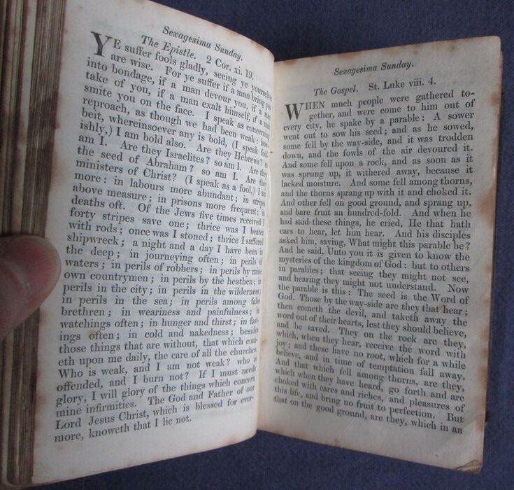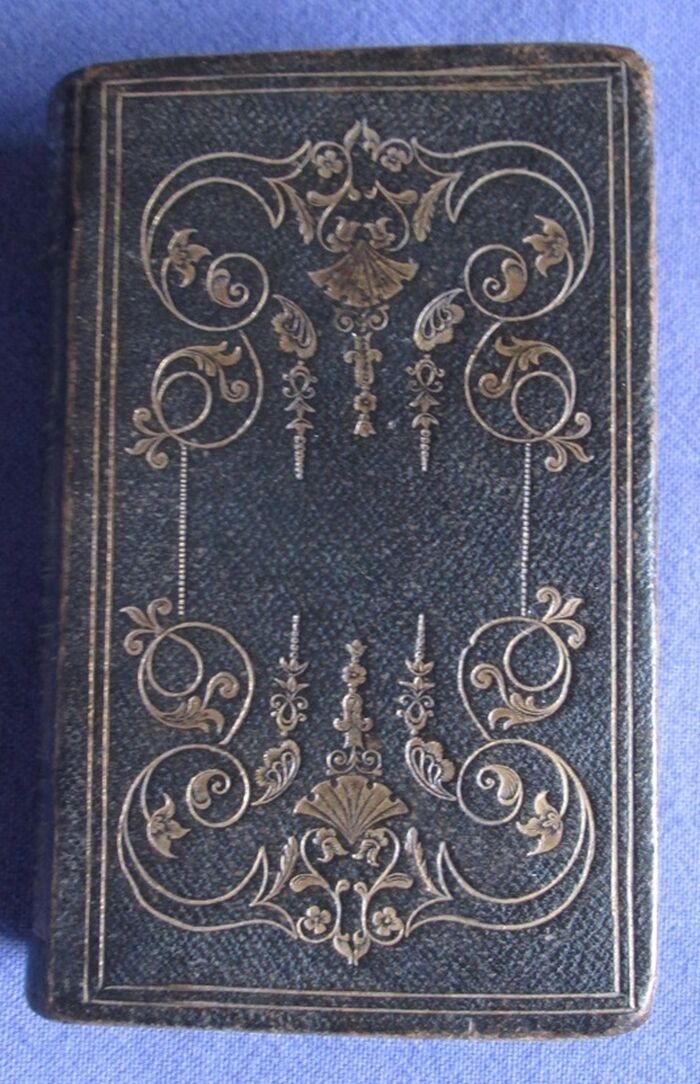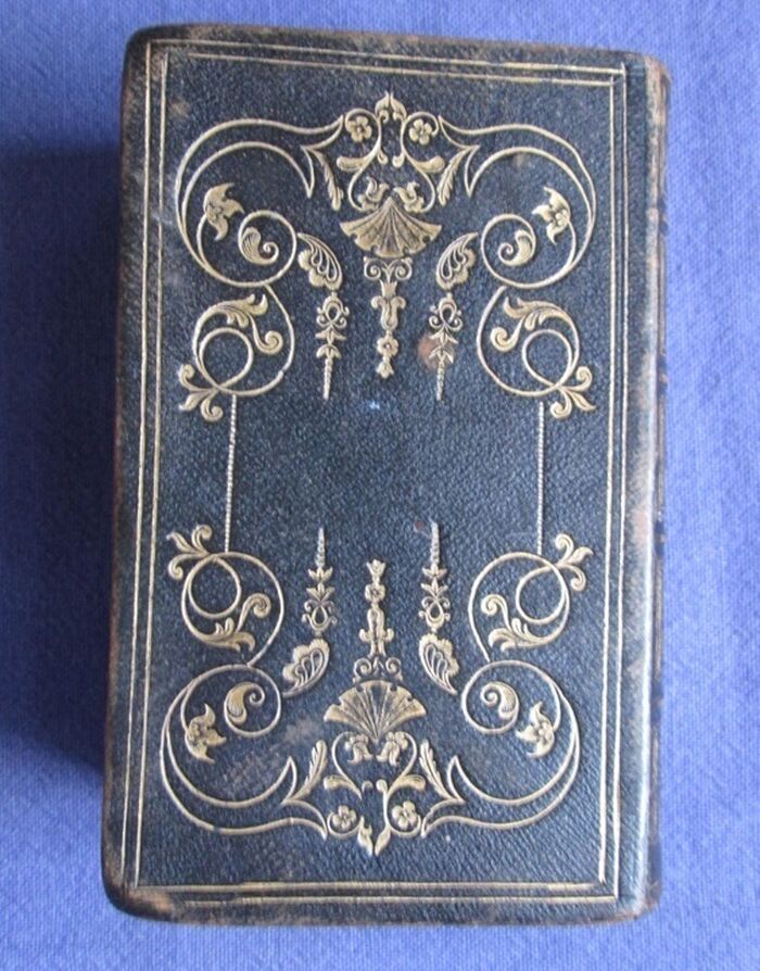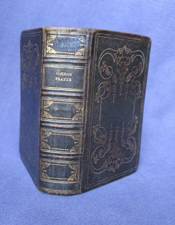 Full decorated leather binding of the Book of Common Prayer. No date but previous owner’s name dated 1872. Full leather bands decorated in gilt to both boards and has gilt decorated compartments to spine. Lettered in gilt to spine. gilt to all edges.