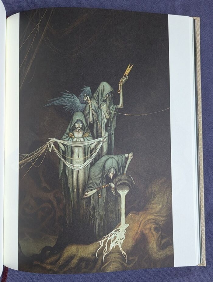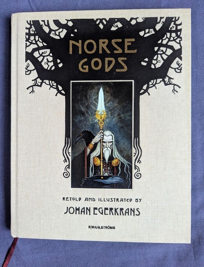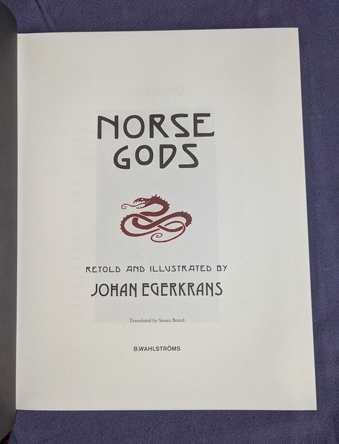 Hardback. Beautifully illustrated tales of the Norse gods including Freyja, Loki and Thor. Retold and illustrated by Johan Egerkrans and translated into English by Susan Beard. First English edition. Johan Egerkrans is well known for his Tolkien illustrations. Attractively bound in beige cloth with colour illustrated pastedown to the front with printed tree in black and titles in gilt and black. Maroon ribbon bookmark. 157pp. Larger format: 280 by 220mm (11 by 8¾ inches). No dust jacket as published.