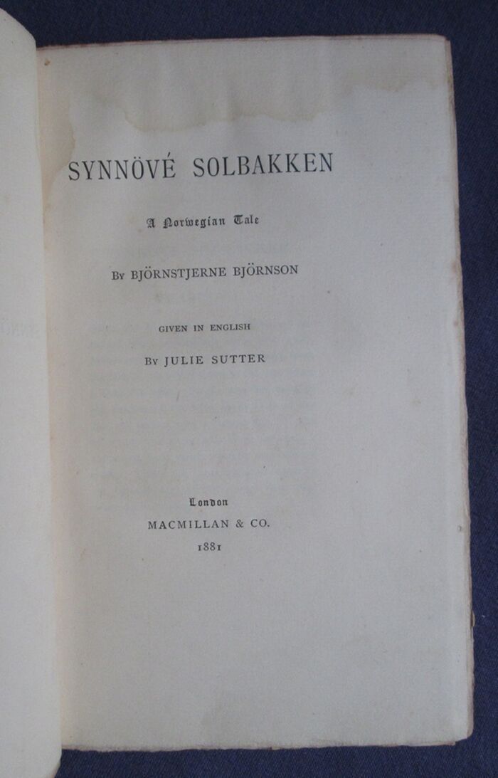 Hardback. 218pp. Novel by the Norwegian writer Bjørnstjerne Bjørnson (1832-1910). Bjørnson was awarded the 1903 Nobel Prize in Literature and wrote the lyrics to the Norwegian national anthem. Translated by Julie Sutter.