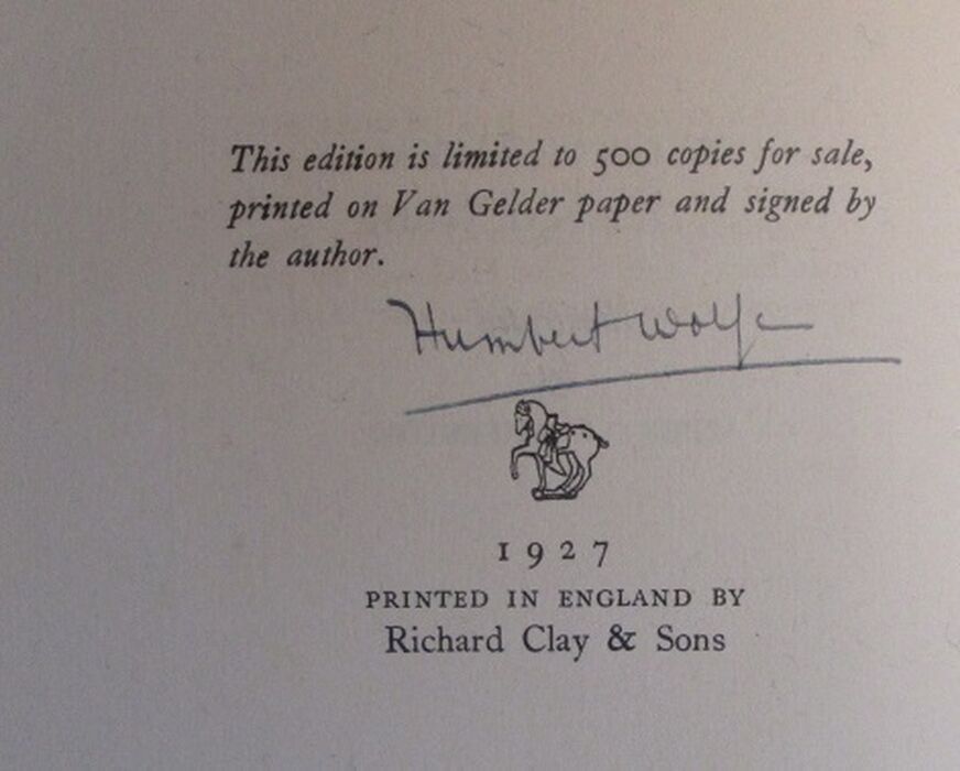 Hardback. 127pp. Signed limited edition, limited to 500 copies. Illustrated by Albert Rutherston. Poetry from a writer considered as a potential poet laureate later in his life.